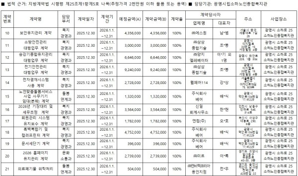 수의계약 내역 공개(2025.12.30.)