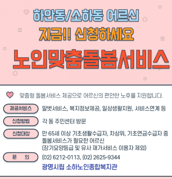 하안동/소하동 어르신 대상 노인맞춤돌봄서비스 신청안내
