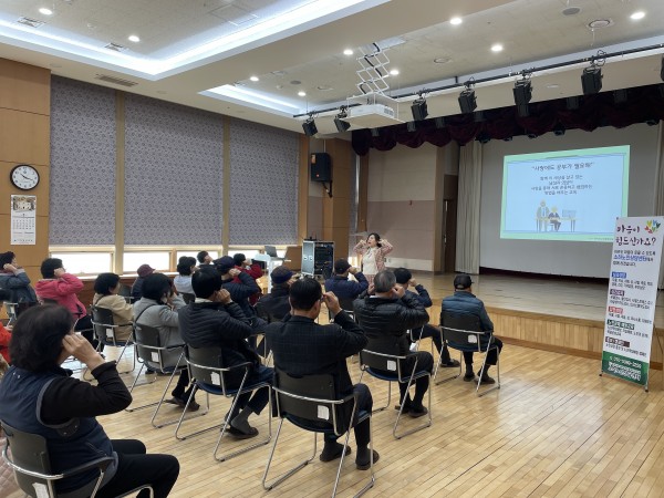 강사를 모시고 진행된 이번 교육프로그램에서는 네 가지 주제 '노년의 성평등한 의사소통', '용기를 내어도 당당할 나이', '사랑에도 공부가 필요하다', '툭 터놓고 얘기해요'를 다루었으며, 건강 체조도 하고 노년의 성에 대해 이야기를 나누는 시간도 가졌습니다.