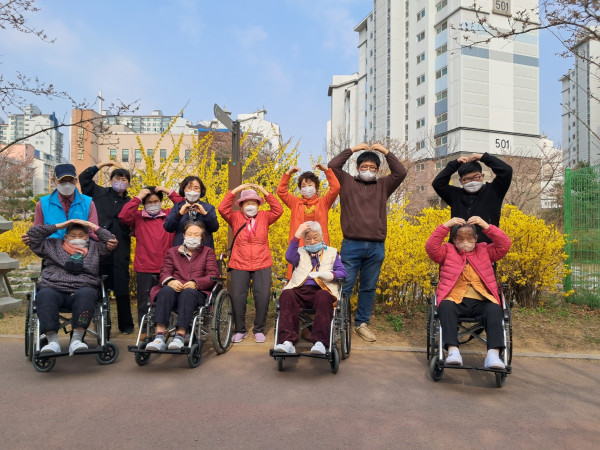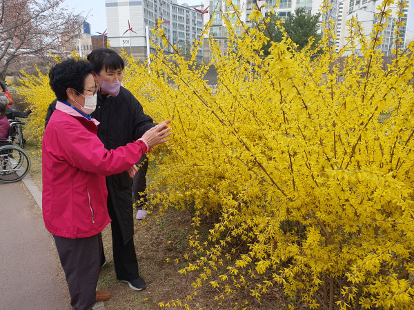 주간보호 어르신들과 한내천에 노란 개나리를 보고 왔습니다.