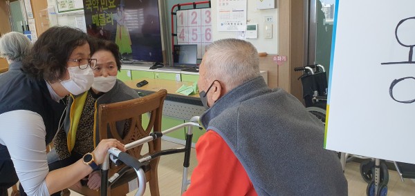 평소 프로그램 참여도가 낮은 어르신도 얼마나 열심히 큰소리로 말씀하시는지... 애타는 마음이 고스란히 전해졌답니다.