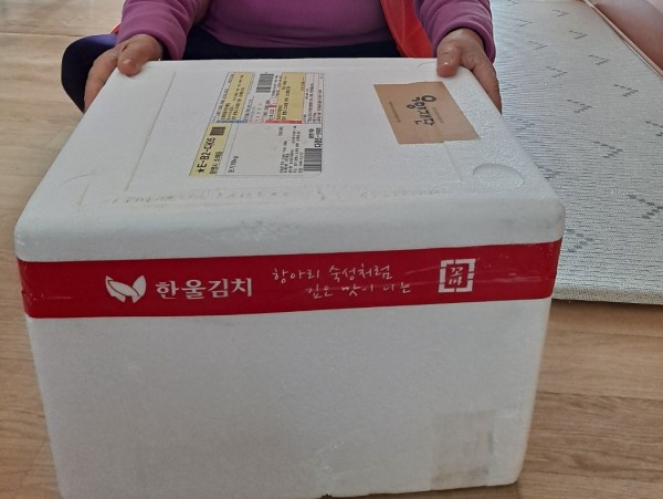 이렇게 김치를 주니 너무 기쁘고 고맙다."