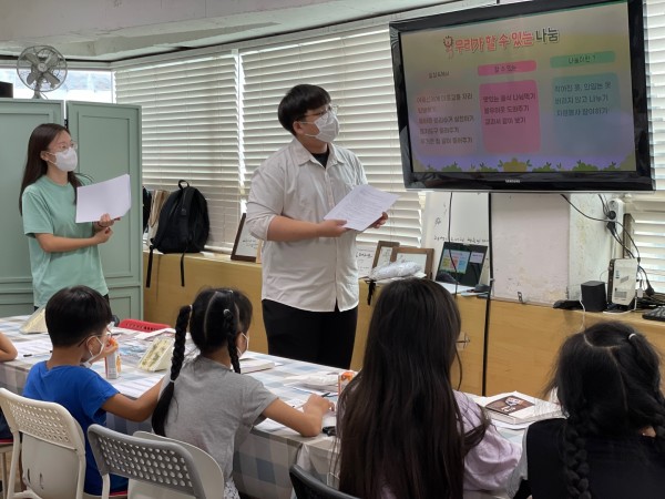 8/11(목) 숲속지역아동센터에서 액션업이 준비한 나눔거점학교-하하호호 모두가 함께하는 즐거운 나눔교실이 진행되었습니다.