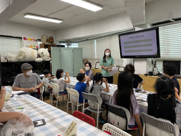 숲속지역아동센터의 초등학생과 어르신들이 함께하는 즐거운 나눔교실은