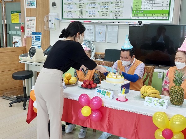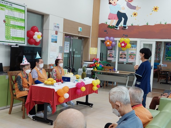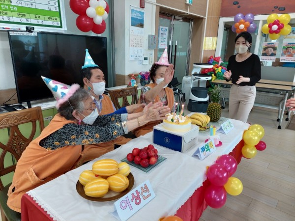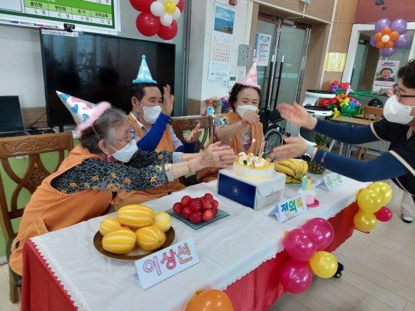 주간보호센터 어르신들과 직원들이 함께 사랑 가득한 마음을 담아 축하드리는 자리를 가졌습니다.