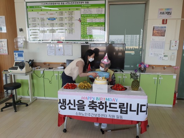 가족들보다 더 많은 시간을 보내고 있는 소하노인주간보호센터 동료 입소자 분들과 직원이 함께 한 생신,