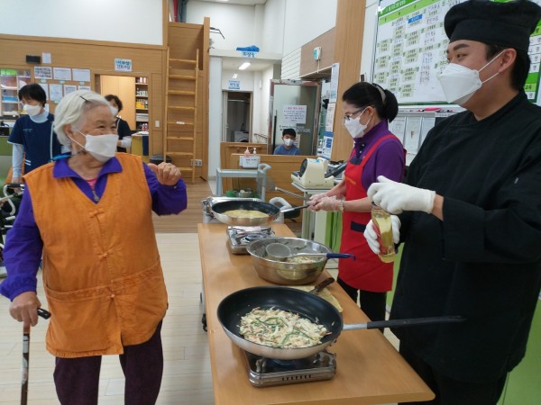이번 요리활동 시간에는 조리사 선생님께서 어르신들 앞에서 직접 요리를 해주셨습니다.