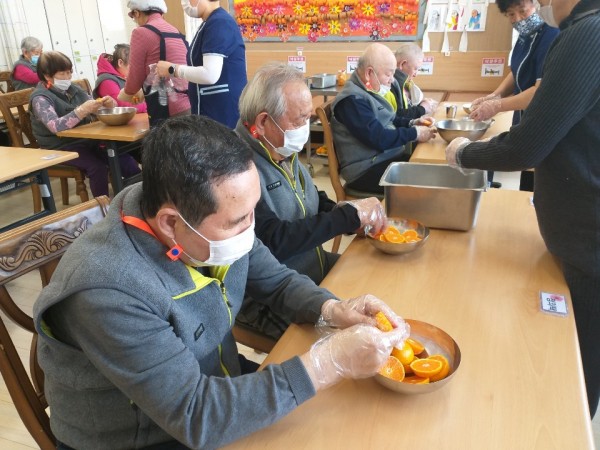 11월5일 목요일. 어르신들은 맛있는 간식을 드시고 난 후 요리활동이 진행되었습니다.