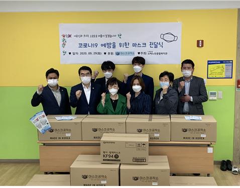 추석연휴를 앞둔 29일, 광명시립소하노인종합복지관에 마스크 공작소 임직원 분들이 방문하여 KF마스크 1만 5백장을 기부해 주셨습니다.