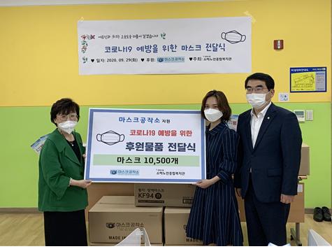후원 전달식에는 마스크 공작소 임직원 분들과 양기대 국회의원, 조미수 시의원, 현충열 시의원 등이 함께 하여 자리를 빛내주셨습니다.