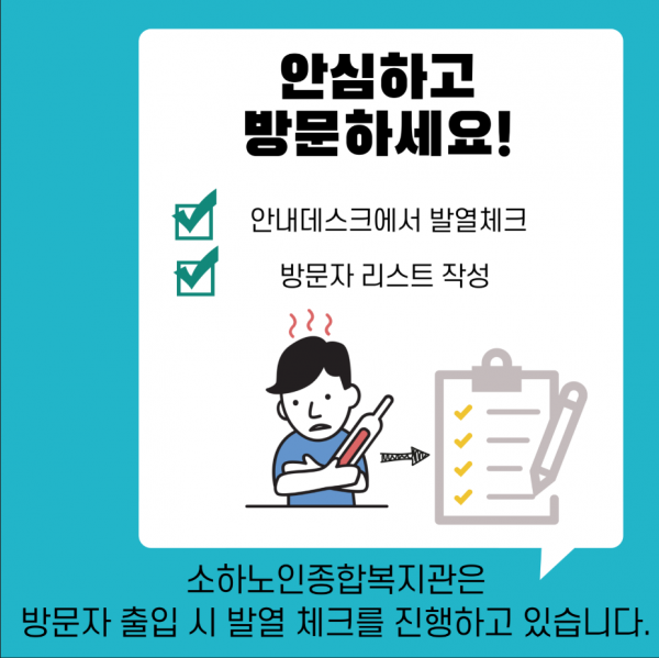 복지관에 방문하시는 모든 방문객들께서는 입구에서 발열체크를 하신 후