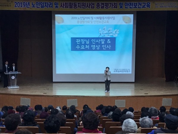 2019년 노인일자리 및 사회활동지원사업 8개 사업단 참여자를 대상으로 11월 22일 광명시 청소년 수련관 대공연장에서 종결평가회가 진행되었습니다.