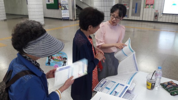 2019년 6월 4일, 광명사거리역에서 복지관 평생교육프로그램 홍보 및 이용상담을 실시하였습니다.