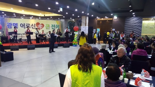 11월 14일 기아자동차 소하리공장과 광명시노인종합복지관이 함께 지역 내 독거노인 500분을 모시고 \'광명어르신 효 큰 잔치\'를 진행하였습니다.