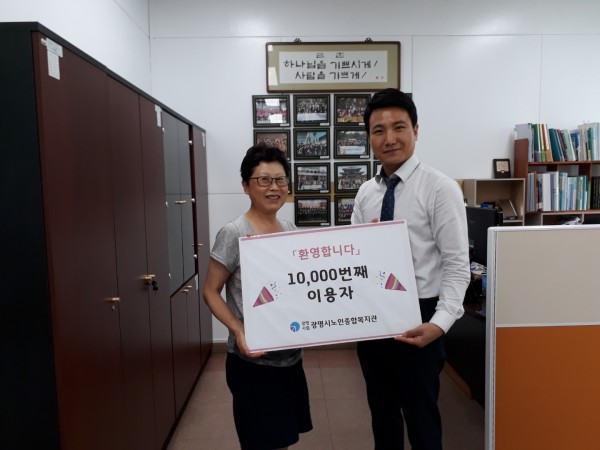 2018년 8월 14일, 광명시노인종합복지관에 만 번째 회원으로 양미령어르신이 오셨습니다.