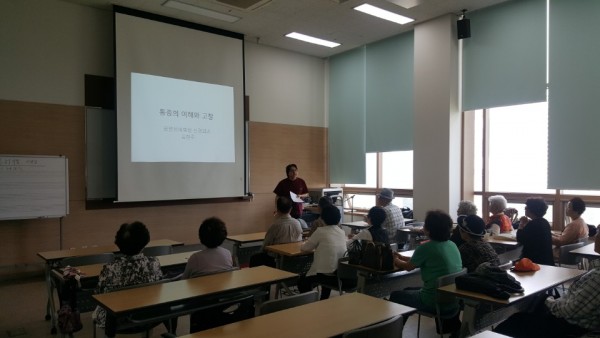어깨, 다리 등 평소 통증이 있으셔서 관심이 있으신 어르신들이 강좌에 참여하셨으며,