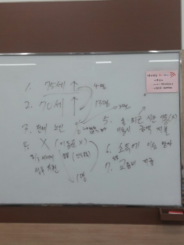 2. 75세 이상에게만 지하철 무료 승차를 허용하자.(4명)