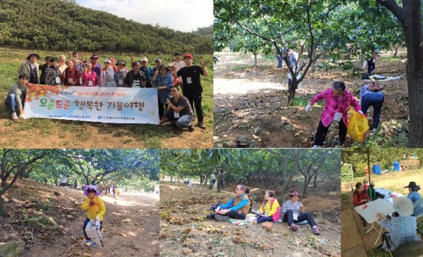 나들이에 참여한 어르신들은 “오랜만에 산에 올라 좋은 공기도 마시고 밤을 주울 수 있어 기분이 좋았다.”, “나이가 들면서 나들이에 나갈 기회가 없었는데 이웃, 친구와 함께 소풍 다녀온 것 같아 즐거웠다.”라고 이야기하였습니다.