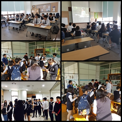 19명의 고등학생 1~2학년 친구들이 광명시노인종합복지관을 방문하여 기관방문소개를 듣고, 라운딩을 하고,