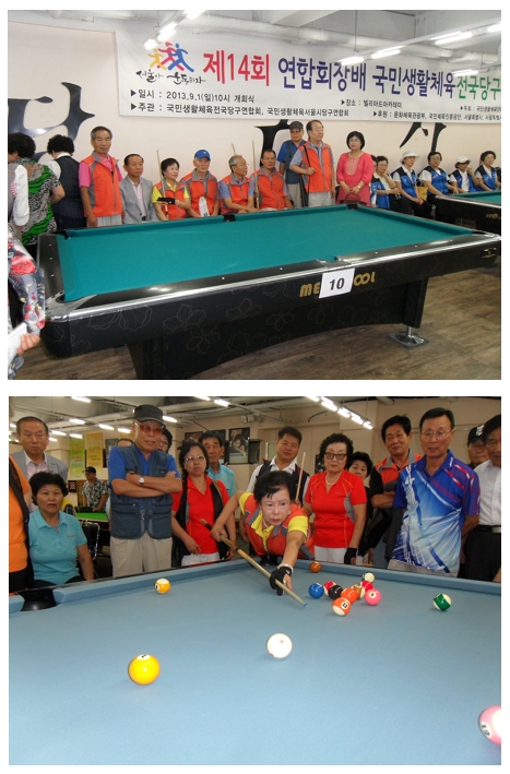 지난 8월 31일 \'제14회 연합회장배 국민생활체육 전국당구대회\' 에 자율이용실 어르신 10분이 출전하셨습니다.