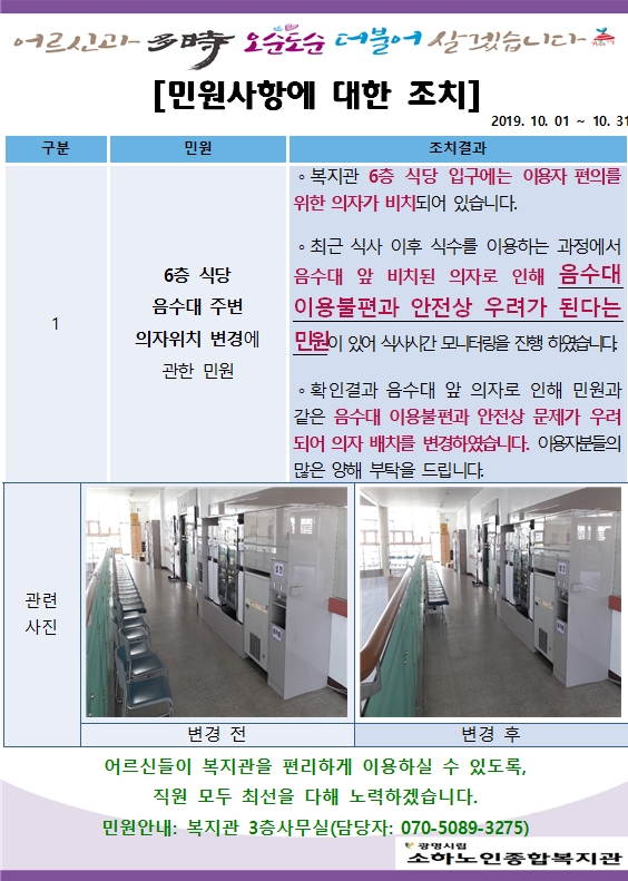 관리자님의 작성글 | 2019년 10월 민원에 대한 결과공지