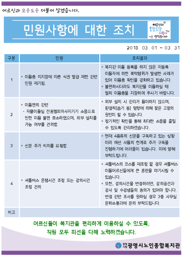 관리자님의 작성글 | 2018년 3월 민원에 대한 결과 공지