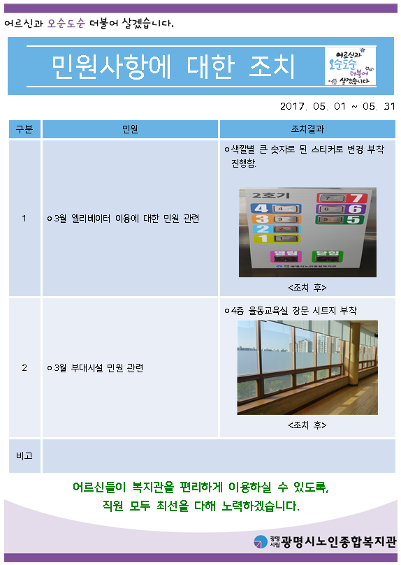관리자님의 작성글 | 2017년 5월 민원에 대한 결과 공지